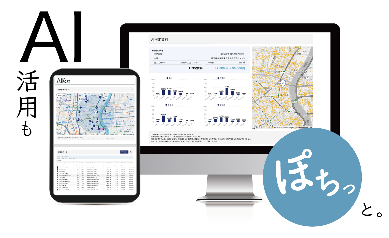 最先端のAIを活用した販売事例データや推定賃料・推定価格を提示しご提案に客観的な正当性をもたらします。